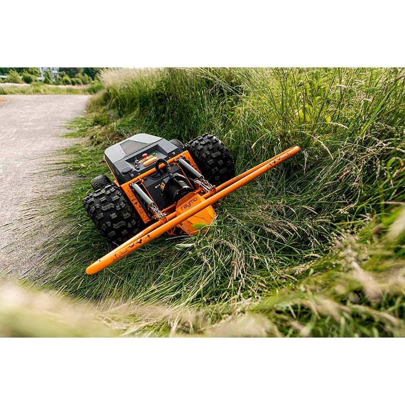 Segadora de peine ecológica para Raymo TORPEDO que cuida la fauna y reduce el ruido. Trabaja a 117 cm de ancho con altura regulable de 30 a 90 mm. Usa cuchillas Busatis de gran calidad y admite patines fijos, ajustables o rodillos para adaptarse al terreno.