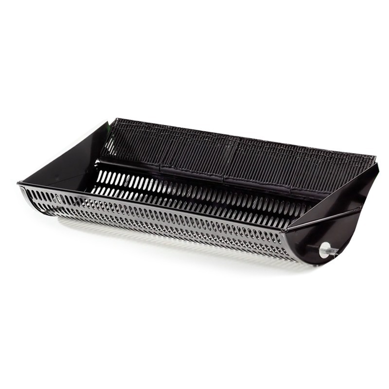La cubeta N2 especial agujereada, de aproximadamente 70 cm de diámetro, facilita la recolección eficiente de aceitunas al evitar la acumulación de ramas y desechos, permitiendo que las aceitunas caigan a través de sus agujeros hacia un recipiente de recolección ubicado debajo.
