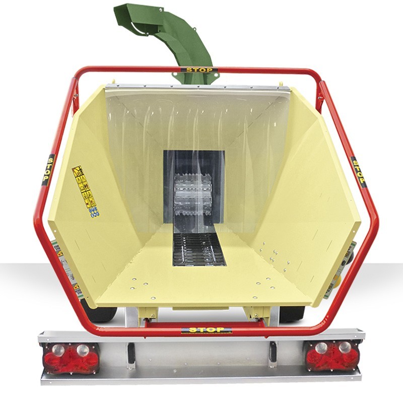Con dimensiones de 3590 mm de longitud, 1540 mm de ancho y 2390 mm de altura (tanto de descarga como de introducción), junto con un peso de 720 kg, se presenta como una opción sólida y completa para el manejo de desechos vegetales a gran escala.