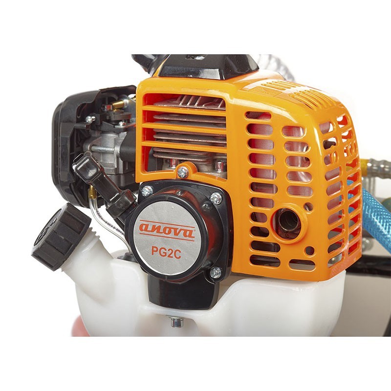Equipada con motor 2 tiempos de 26 cc y bomba ANOVA PG2C, proporciona un caudal de 16 L/min y presión de 18 bar, ideal para distribuir fertilizantes, insecticidas o herbicidas de manera homogénea. Este rendimiento ayuda a conseguir tratamientos regulares, optimizando el consumo de producto y el tiempo de trabajo.
