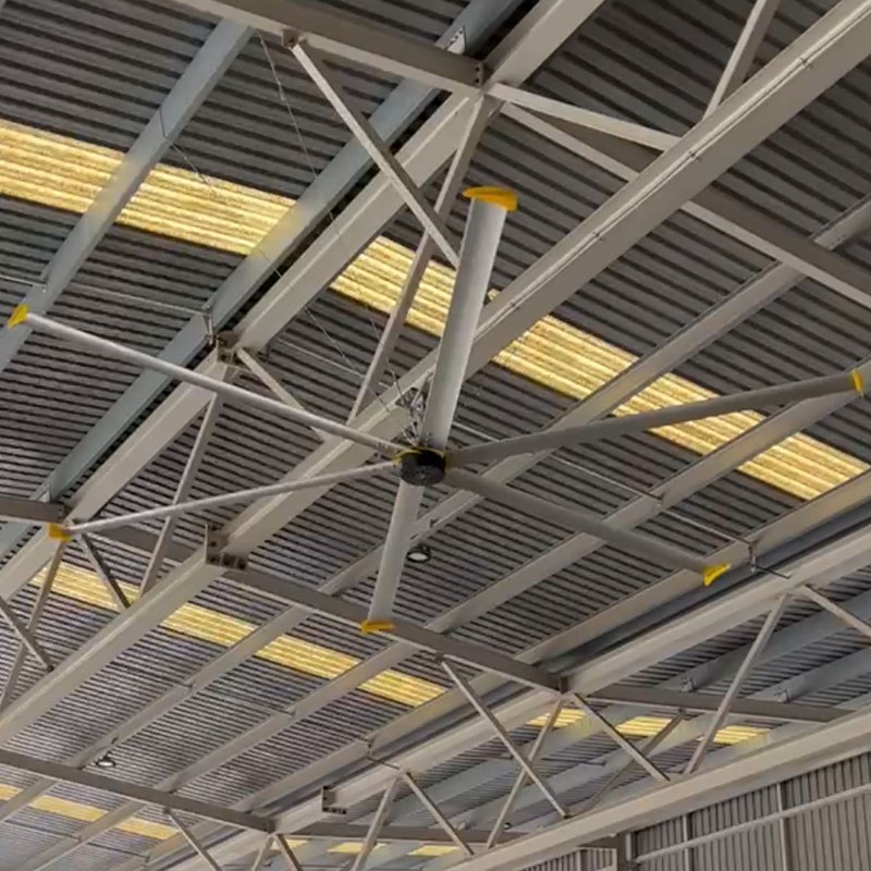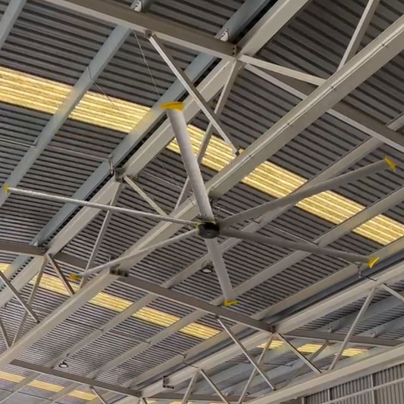 Der RhinoAir Industrie-Deckenventilator ist die ideale Lösung für große Räume, die eine effiziente und konstante Belüftung erfordern. Sein leistungsstarker 1,4-kW-Motor wandelt elektrische Energie in Bewegung um und treibt seine sechs Flügel mit einem Durchmesser von 6,2 Metern mit einer maximalen Geschwindigkeit von 60 U/min an.