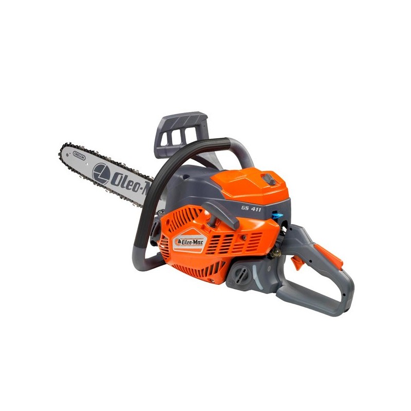 Die kettensäge Oleo Mac GS411 hat einen 2-Takt-Emak-Motor (EURO 5). Er bietet eine Leistung von 2,6 PS / 1,9 kW (8.500 U/min) und einen Hubraum von 39 cm³. Der maximale Kraftstoffverbrauch liegt bei 820 g/h (8.000 U/min).