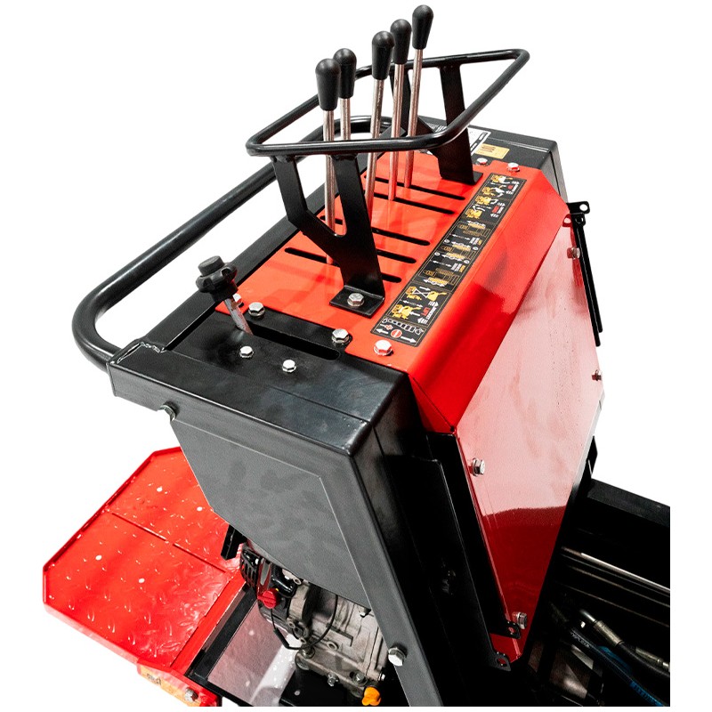 Er kann bis zu 500 kg laden und verfügt über eine hebbare Mulde und eine Entladeschaufel, um die Arbeit zu erleichtern. Mit seinem hydrostatischen Antrieb und dem 270cc Loncin-Motor ist er eine robuste und effiziente Maschine für harte Arbeiten.