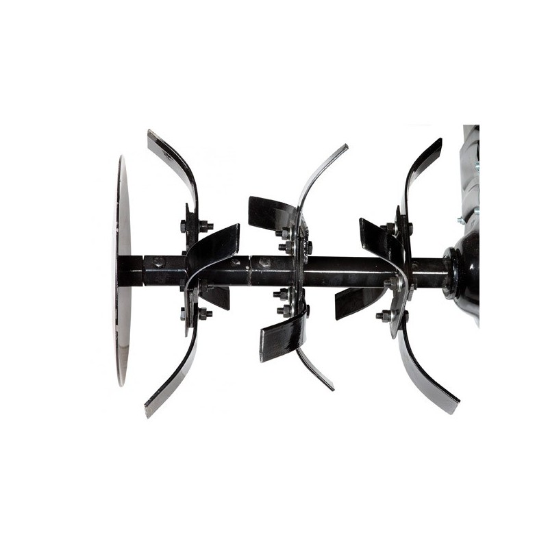 Die Motorhacke 205S beinhaltet, die pinne 85 cm mit seitlichen Schutzscheiben, einem verstärkten Sporn, einem um 180 Grad drehbaren Lenker und einem Transportrad.