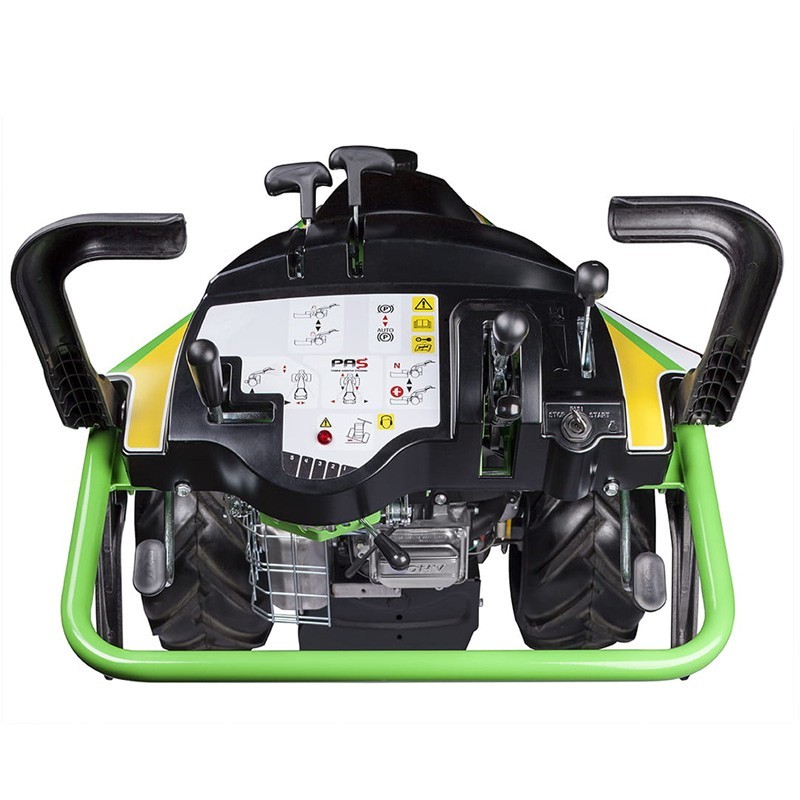 Darüber hinaus zeichnet sich die Mehrzweck-Benzinmaschine Eurosystems P 130 durch ihr optionales Hang-Motorsystem aus, mit dem sie Steigungen von bis zu 40-45 Grad mit einer Logiksteuerung und einem Aktuator für die Motorschwingung bewältigen kann.