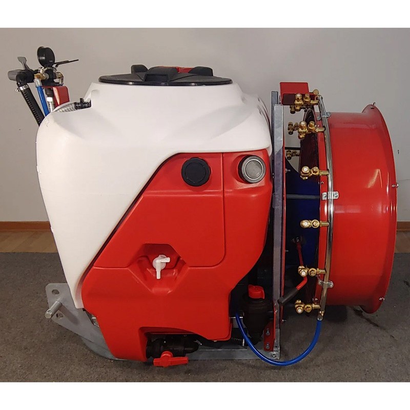 Die Giemme NEO-S Spritze ist ein hocheffizientes landwirtschaftliches Gerät, das die Ausbringung von Pflanzenschutzmitteln auf die Kulturen erleichtert. Sein Gebläse mit variabler Steigung, das mit 9 Nylonflügeln und Glasflügeln mit einem Durchmesser von 800 mm ausgestattet ist, sorgt für eine gleichmäßige Verteilung der Flüssigkeit.