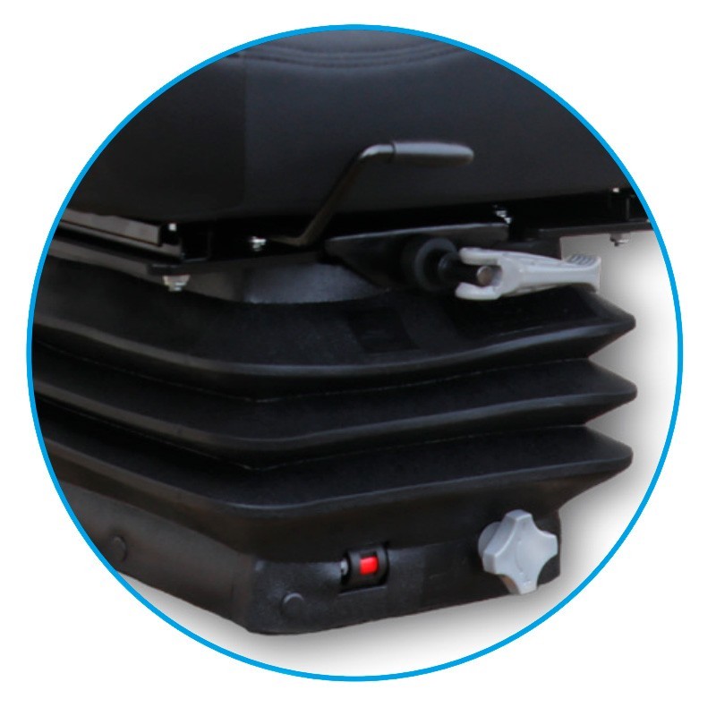 Mechanisch gefederter Obersitz mit Gewichtseinstellung, Gleitschienen, verstellbaren Armlehnen und Kopfstütze. Sitzmaße 50 x 60 mit einer Höhe von 80 cm und einer Basis von 35 x 25, um in enge Kabinen zu passen. Gepolstert mit einem sehr widerstandsfähigen schwarzen Stoff, der auch intensiver Nutzung standhält, und mit Sicherheitsgurt. Das Gleitführungssystem erleichtert die montage und die Feineinstellung der Fahrposition.