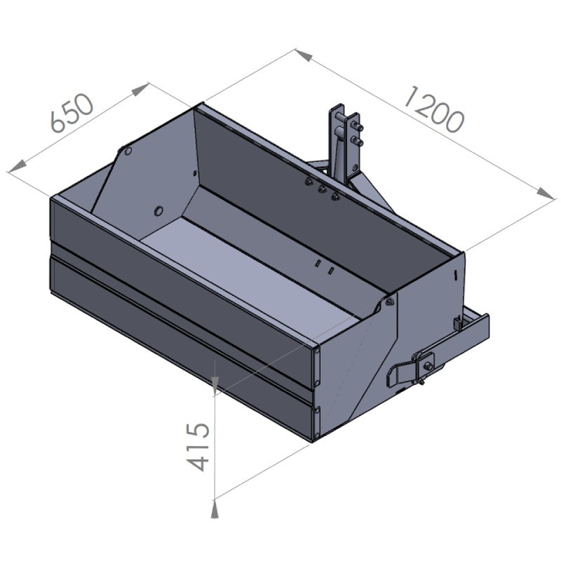 The rear bucket BUCKET-120H from the brand Deleks is an accessory for tractors with a power of 14 to 40hp. It has the capacity to transport a large amount of materials such as soil, sand, and snow with a maximum capacity of 400kg.