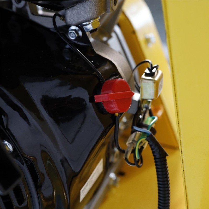 The Garland Chipper 1190 TQG wood chipper is powered by a 4-stroke gasoline engine. It provides a total power of 9000 W and a displacement of 389 cc. This model is mounted on wheels.