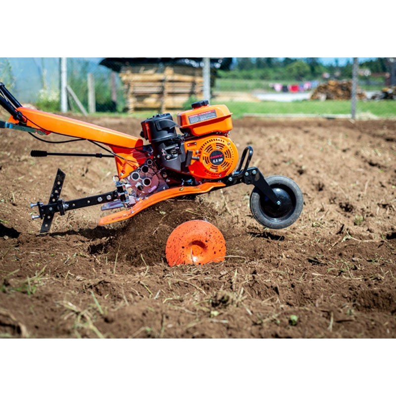 As standard the garden tiller gasoline Anova MC507 includes a pneumatic depth gauge, depth guide, side plates and pneumatic wheels. In addition, it has a total weight of only 70kg.