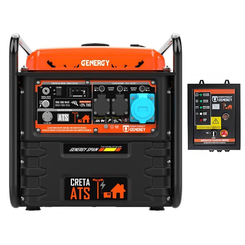 The Inverter electric generator Genergy Creta ATS has a maximum power of 7500W and a nominal power of 7200W. In addition, it works with a frequency of 50 Hz and a voltage of 230 V.