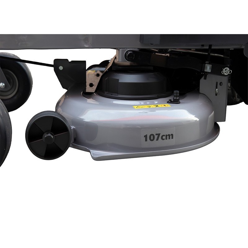 The zero turn mower Anova ZT107H is the perfect solution for those who are looking for a professional and efficient cut on large surfaces. Thanks to its 107 cm cutting width and its side discharge system, it allows you to work quickly and accurately, adapting to different lawn heights with its 7 cutting positions, ranging from 25 to 102 mm.