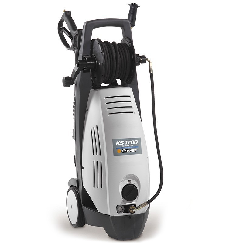 The electric pressure washer Comet KS 1700 Gold Extra offers exceptional performance thanks to its electro-pump Comet, equipped with three axial pistons in vertical position, built in solid metal without plastic components, guaranteeing durability and efficiency.
