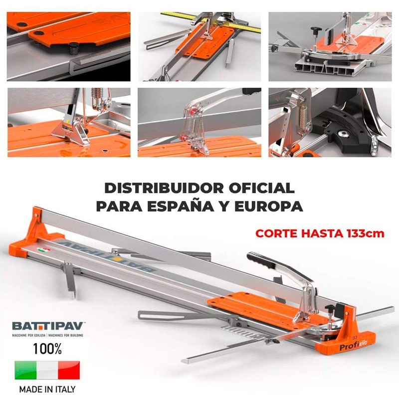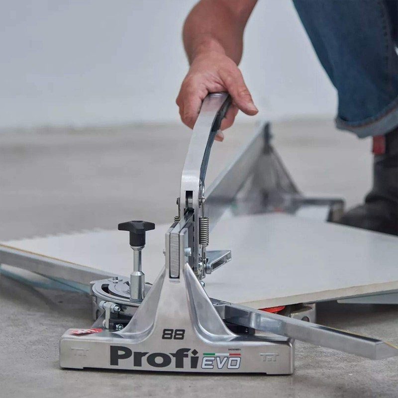 The Profi Evo "TO PUSH" tile cutter is used for diagonal and straight cuts on ceramic tiles or porcelain stoneware with one or two firings.