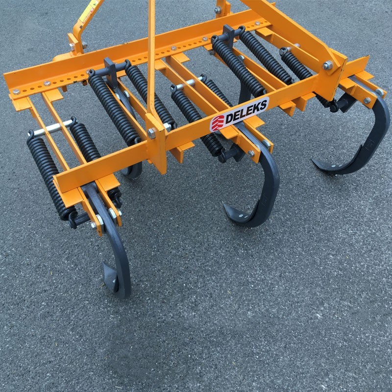 The model DE-120/5 of Deleks allows us to aerate the soil up to a depth of 38 cm. This is depending on the type of soil and the power of the tractor. When one of the tines comes in contact with an obstacle, the other tines continue to work at the same depth.