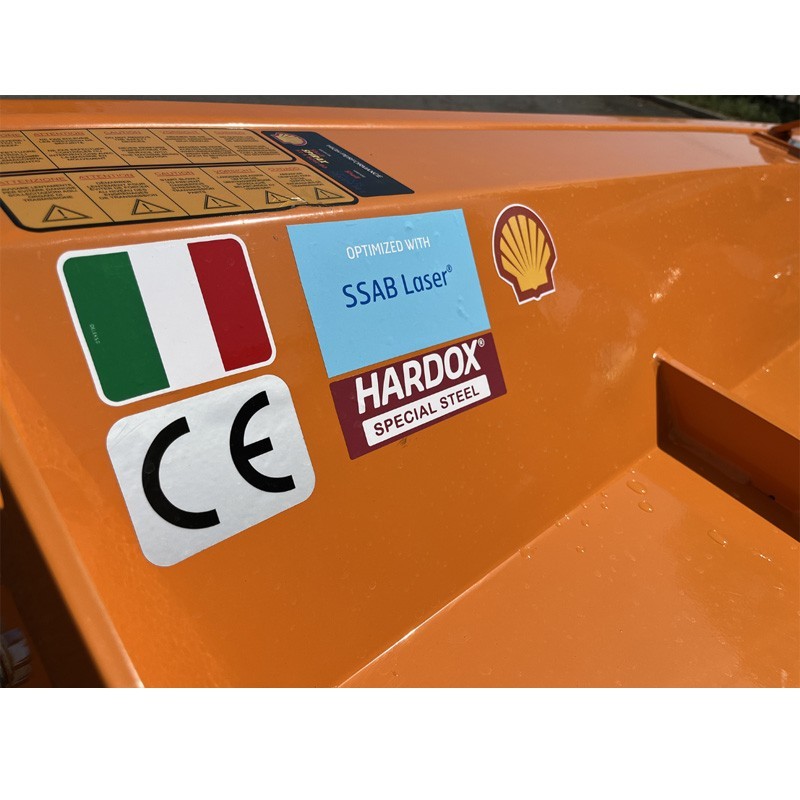 Il dispose d'un châssis robuste et rotor de 160 mm de diamètre, est compatible avec tous les tracteurs équipés de attelage à 3 points de la catégorie 1-2, sa structure est entièrement constituée de acier suédois SSAB, qui dispose d'un épaisseur de 4 + 4 mm et côtés de 8 mm.