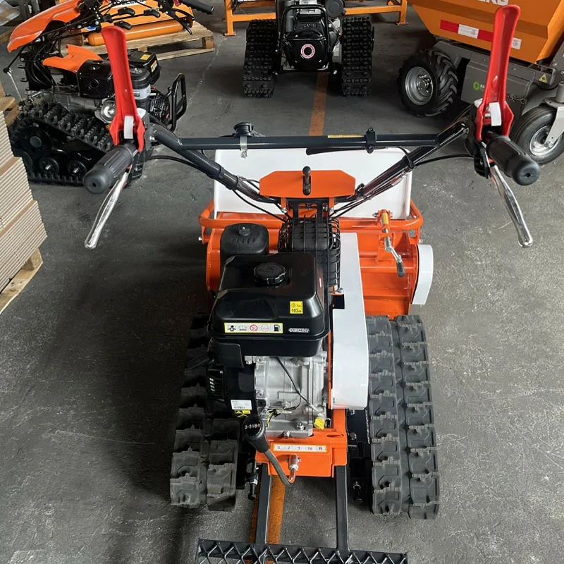 L'un de ses points forts est le système chenilles, qui assure une traction et une stabilité excellentes, même sur des pentes raides allant jusqu'à 30°. Cette caractéristique, associée au guidon réglable et à la marche arrière, en fait un outil très maniable sur les terrains accidentés ou difficiles d'accès.