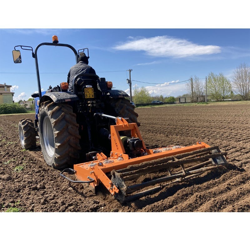La conception spéciale des lames permet de broyer le sol avec une grande économie du tracteur, elle dispose d'un réducteur de vitesse avec T.D.F. 540 RPM, son cardan contient un embrayage et elle est équipée d'un attelage 3 points universel de catégorie 1 et 2.