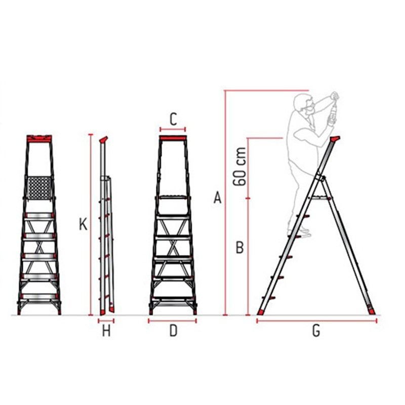 Disponibles en 6 modèles différents en fonction du nombre de marches et de la hauteur requise. Dotées d'un tablier en acier antidérapant et d'un plateau à outils, ces échelles constituent la solution la plus sûre et la plus performante du marché.