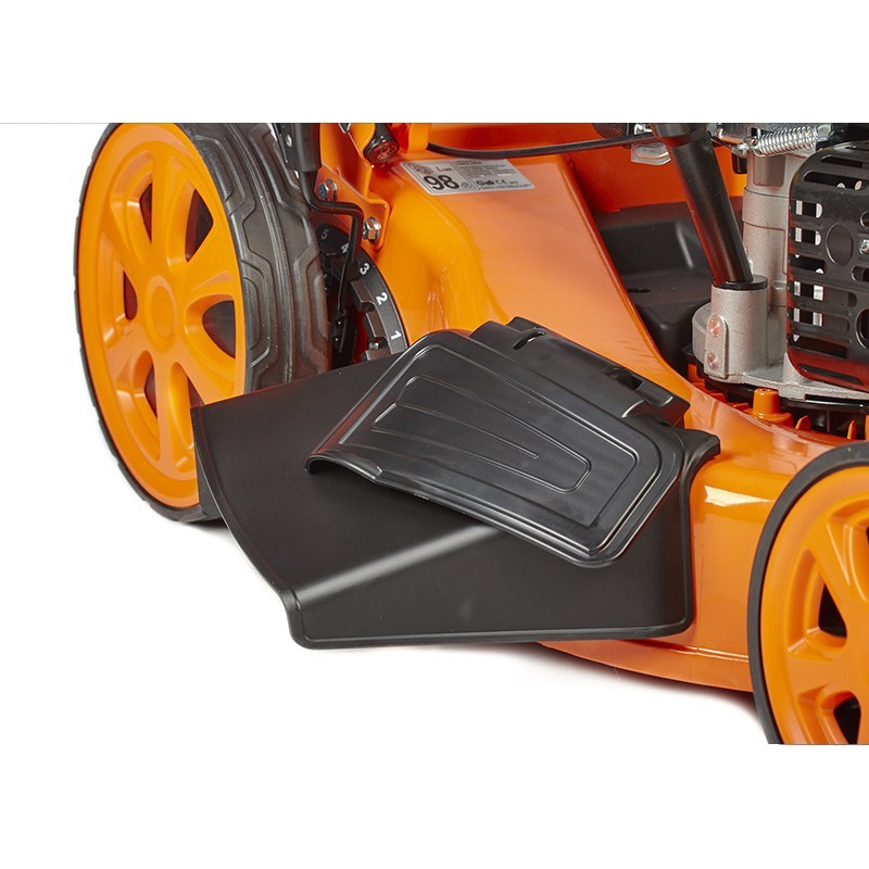 La tondeuse a une grande largeur de coupe de 51 cm et 5 hauteurs de coupe réglables entre 25 et 75 mm. De plus, elle est équipée d'un bac de 60 litres qui vous permet de travailler en toute indépendance sans devoir vous arrêter constamment et d'un indicateur de remplissage du bac. Il dispose également d'une poignée ergonomique et d'une fonction 4 en 1 (coupe-recyclage-recyclage-sortie latérale)