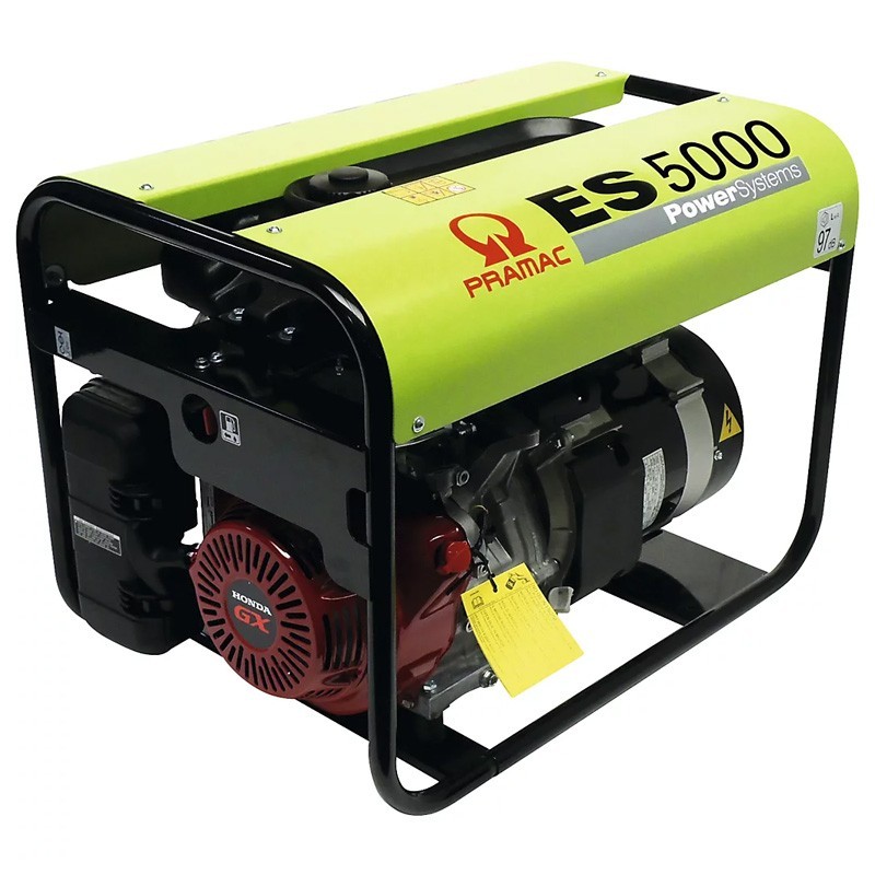 Le générateur électrique à essence Pramac ES5000 fonctionne à une fréquence de 50 Hz et fournit une tension de 230 V, avec un facteur de puissance de 0,9 cos ϕ et une seule phase. Ce générateur est disponible en deux modèles, l'un avec un système de stabilisation AVR pour un approvisionnement électrique constant et l'autre sans cette fonction, offrant une polyvalence selon les besoins.