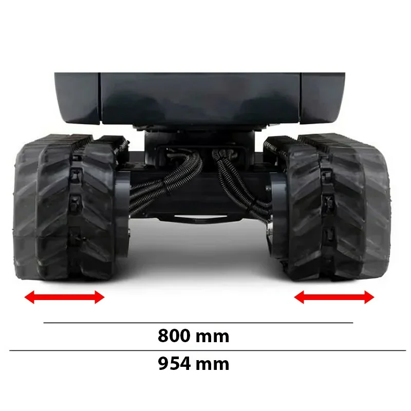 La mini-pelle automotrice Rhinocéros Zeppelin se présente comme un outil d'excavation puissant et polyvalent, pesant 1000 kg et équipé d'un moteur Koop de 8,6 kW / 11,7 CV, garantissant des performances optimales dans diverses conditions. Sa conception compacte, avec une largeur hors tout réglable de 800 à 954 mm.