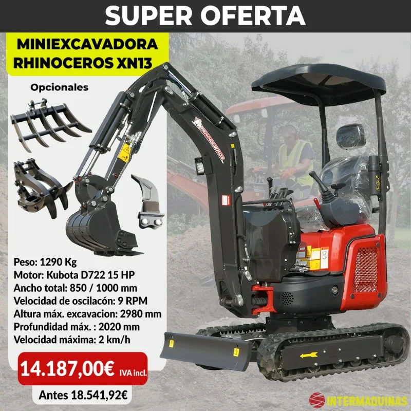 Les mini-pelle Zeppelin Rhinocéros XN13 arrive avec SUPER OFFRE et un rapport qualité-prix inégalé. Il est compact et maniable et passe dans les passages étroits grâce à son châssis télescopique doté d'un système d'ouverture et de fermeture automatique chenilles qui s'ouvrent et se ferment pour s'adapter à la largeur de travail. Elle est équipée d'un moteur Kubota de 15 CV et offre une capacité de charge de 1,5 million de tonnes poids en ordre de marche de 1 290 kg qui assure la stabilité et le maintien sur place pour travailler en toute confiance dès le premier jour.