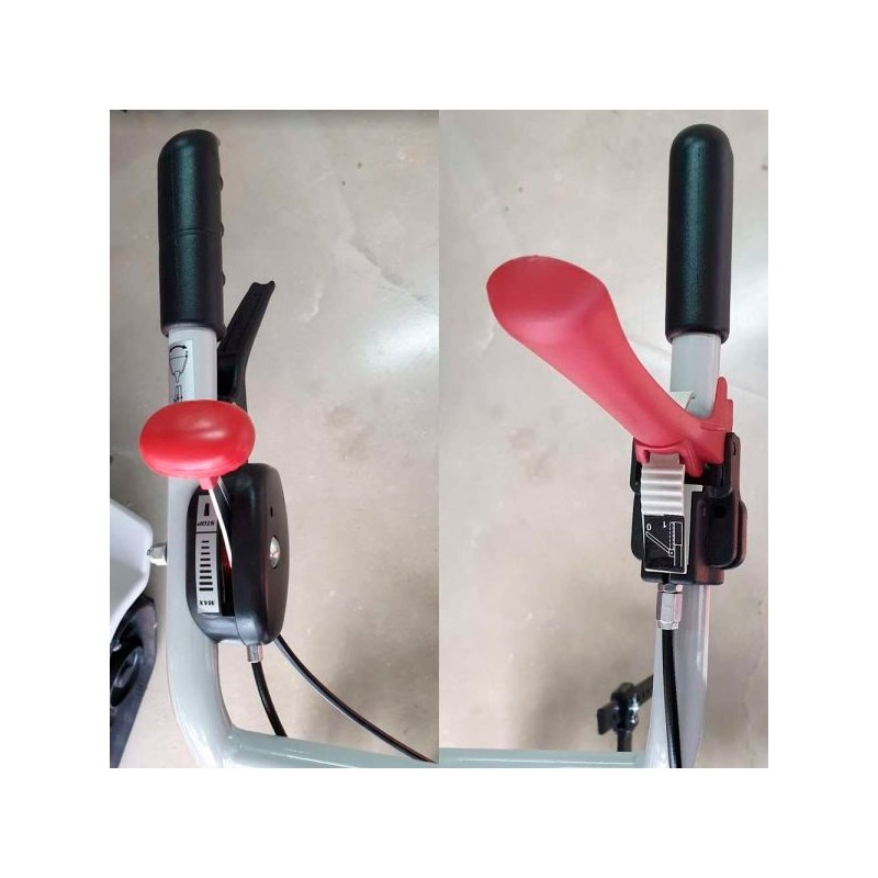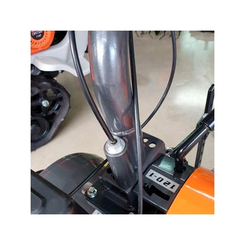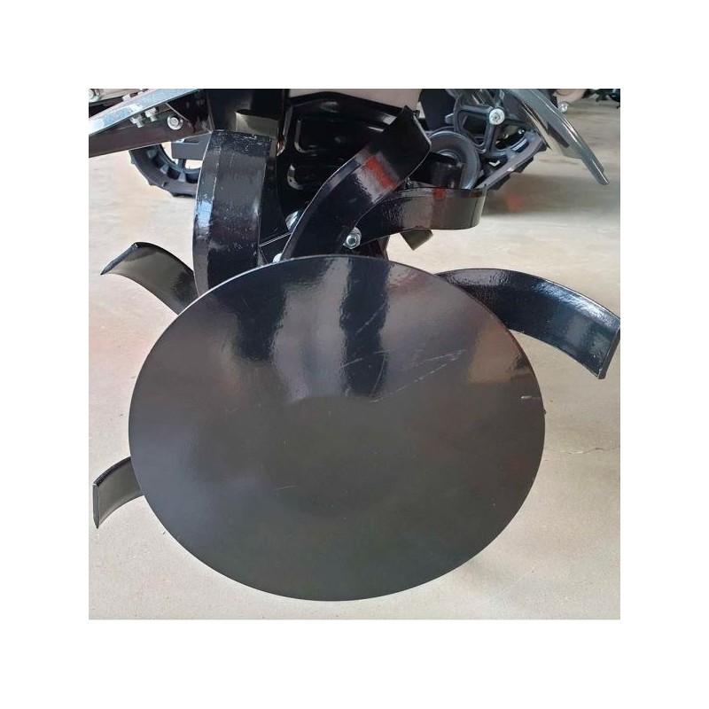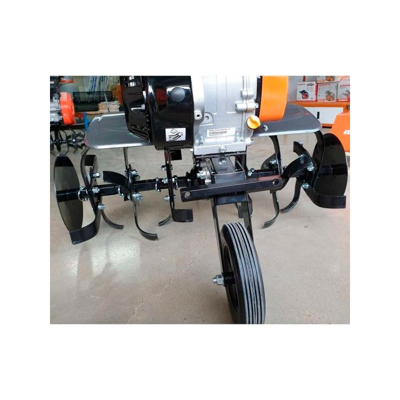 Il comprend également des disques latéraux réglables ou limitables à 35 cm. Il est équipé d'une boîte de vitesses à trois rapports, de deux vitesses avant vitesses et d'une marche arrière. Un guidon entièrement réglable est inclus.
