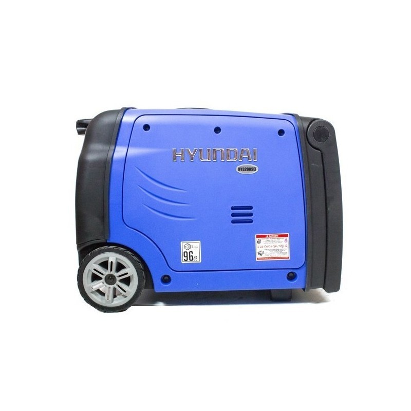 El generador eléctrico inverter HYUNDAI HY3200SEi con una potencia nominal de 2.8 kW y una capacidad máxima de 3.2 kW, este generador ofrece un suministro de energía estable a una frecuencia de 50 Hz y un voltaje de 230 V, con dos enchufes de 16 A para múltiples dispositivos y herramientas.