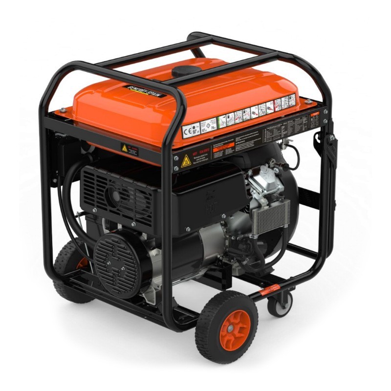El Generador eléctrico Gasolina Genergy Cervascán II-S Dual Volt tiene unas dimensiones de 790x660x811mm — 810x763x994mm y un peso de 156 Kg, y esta equipado con con dos ruedas antipinchazo de 10” y dos de 360º.