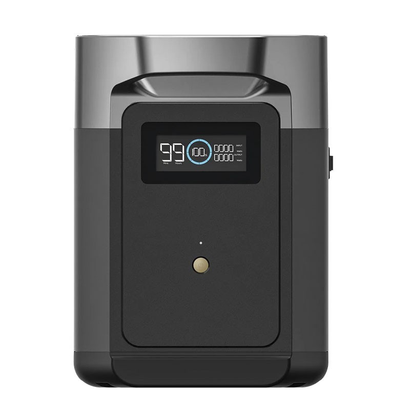 La batteria supplementare per il generatore solare EcoFlow DELTA 2 ha una capacità di carica di 2048 Wh e un tempo di ricarica di 120 minuti. Inoltre, la ricarica è comoda in quanto può essere effettuata dai pannelli solari, dalle prese di corrente o dal generatore stesso.
