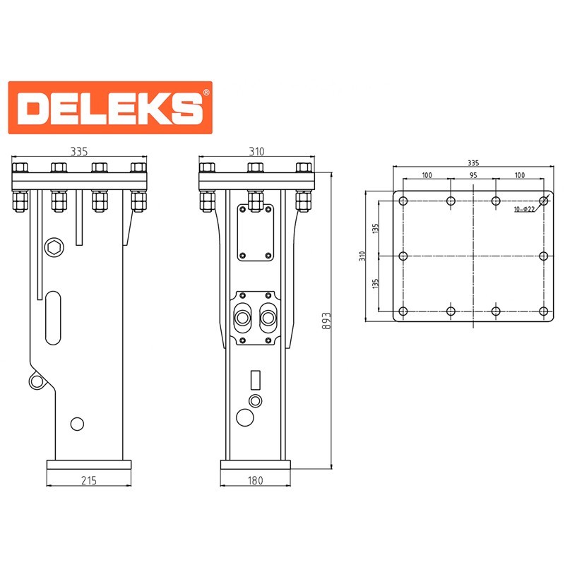 Il demolitore idraulico BRH Deleks HAMMER-530-S 320 Joule è un accessorio potente e silenzioso progettato per i mini escavatori. Con un peso di 185 kg, è perfettamente adatto agli escavatori da 2,5 a 5,0 tonnellate. Il suo flusso d'olio ottimale, da 25 a 45 l/min, assicura prestazioni efficienti durante il lavoro.