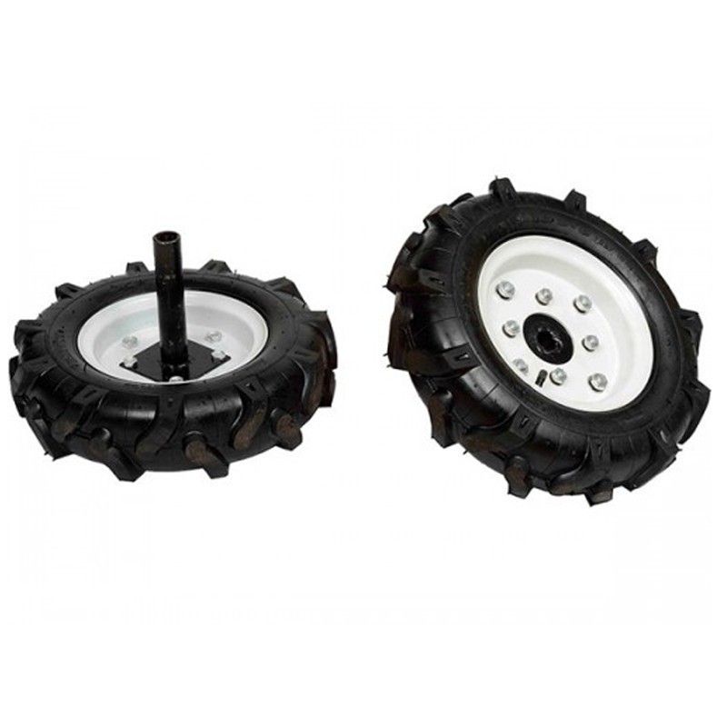 Il set di ruote è un accessorio per attrezzi agricoli che fornisce stabilità e mobilità su diverse superfici. Con ruote per impieghi gravosi e un design che consente una distribuzione equilibrata del peso, questo set di ruote facilita il trasporto e il funzionamento delle macchine agricole su terreni diversi.