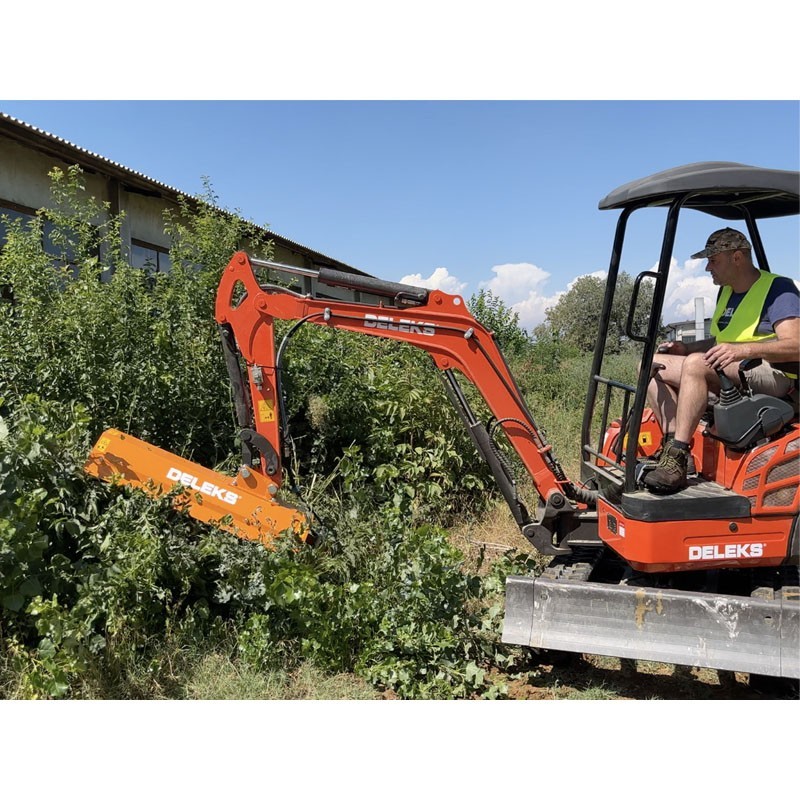 Decespugliatore da 80 cm, testa decespugliatrice con lame per mini escavatore - DELEKS® - Per rovi, cespugli, fossi. Motore idraulico Made in Italy - 2 anni di garanzia.