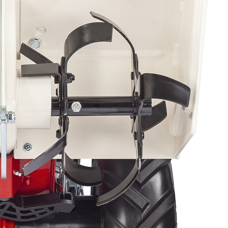 Lo sperone regolabile e l'attacco posteriore a 4 stelle facilitano il funzionamento, mentre il zappa 50 x Ø26 cm, dotato di 16 lame in acciaio su un asse orizzontale, assicura un lavoro efficiente e preciso nella preparazione del terreno.