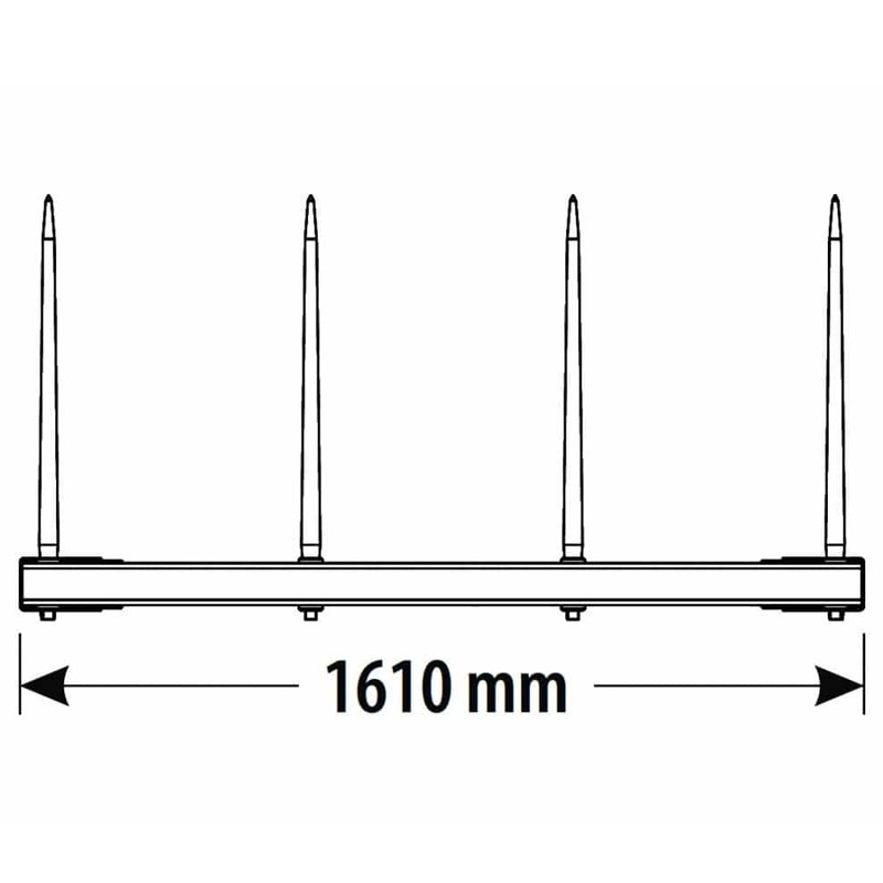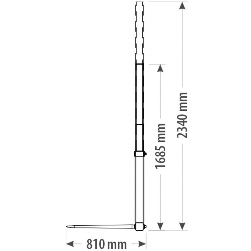 Dotato di quattro denti forgiati di alta qualità, questo caricatore offre una larghezza di lavoro di 1610 mm e supporta carichi fino a 2500 kg. Con un'altezza regolabile tra 1685 mm e 2300 mm, si adatta alle diverse esigenze, garantendo una movimentazione comoda e sicura. Il suo design ottimizza la distribuzione dei letti di paglia e altri compiti correlati.
