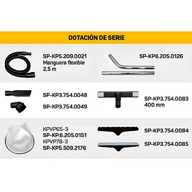 L'aspirapolvere Kompak KPVP65-2 con una potenza nominale di 3000W e una potenza massima di 3600W, questo aspirapolvere è alimentato da tre motori, che forniscono un vuoto a colonna di 22 kPa/2200 mmH2O e un flusso d'aria di 195 l/s.