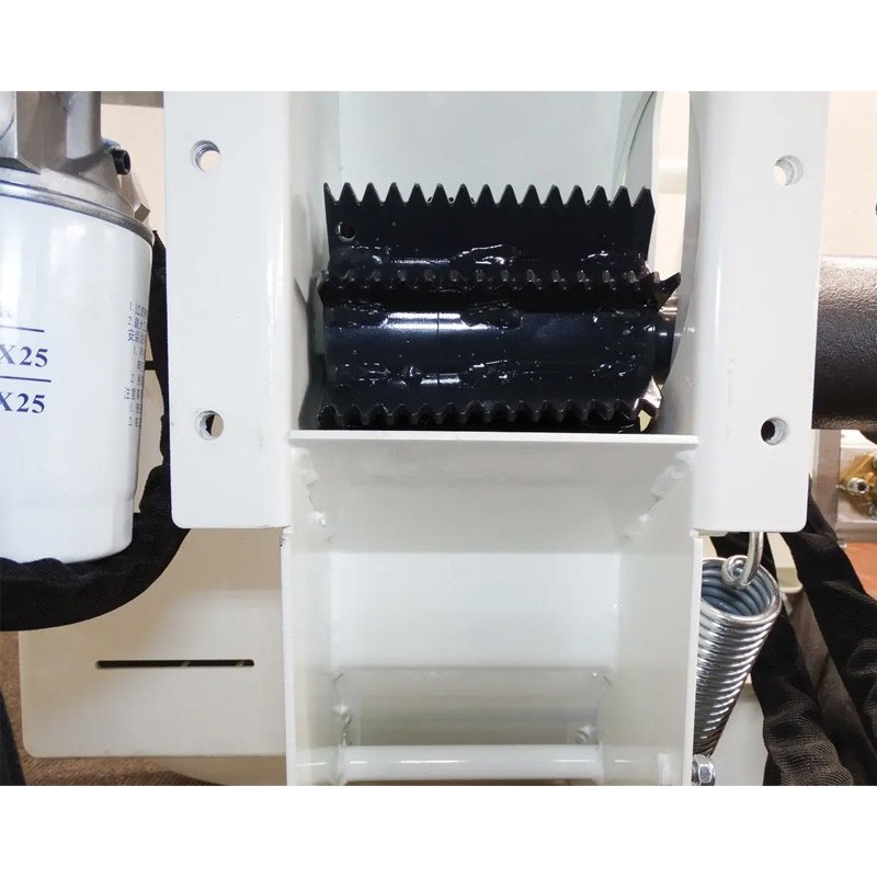 La macchina si adatta facilmente a trattori con un attacco universale a 3 punti di categoria I-II, e la sua valvola di regolazione manuale consente di regolare la velocità del rullo di alimentazione in base alle esigenze dell'utente.