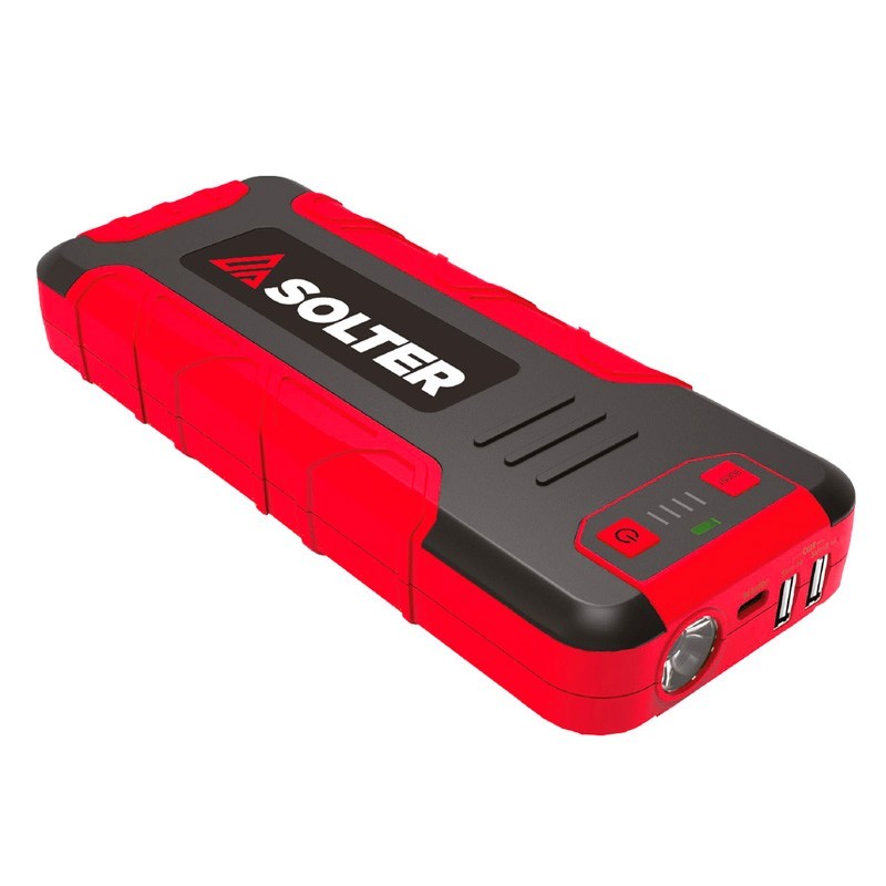 L'avviatore di emergenza Solter LITHIUM LT-17 combina potenza e versatilità per garantire l'avviamento del veicolo e la ricarica dei dispositivi in situazioni critiche. La sua batteria da 17.000mAh (62,9Wh) offre una capacità di avviamento di 500A e picchi fino a 1200A, compatibile con motori a benzina fino a 3L e motori diesel fino a 2L.