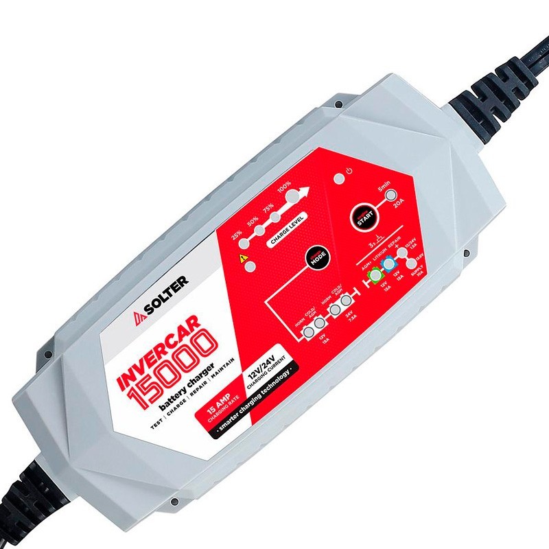 Il caricabatterie Solter INVERCAR 15000 è uno strumento potente e versatile, progettato per caricare e mantenere le batterie a 12 e 24 V, compatibile con tutti i tipi di batterie. Offre una capacità di carica massima di 400Ah a 12V e 200Ah a 24V, ideale per veicoli, macchinari e attrezzature industriali.