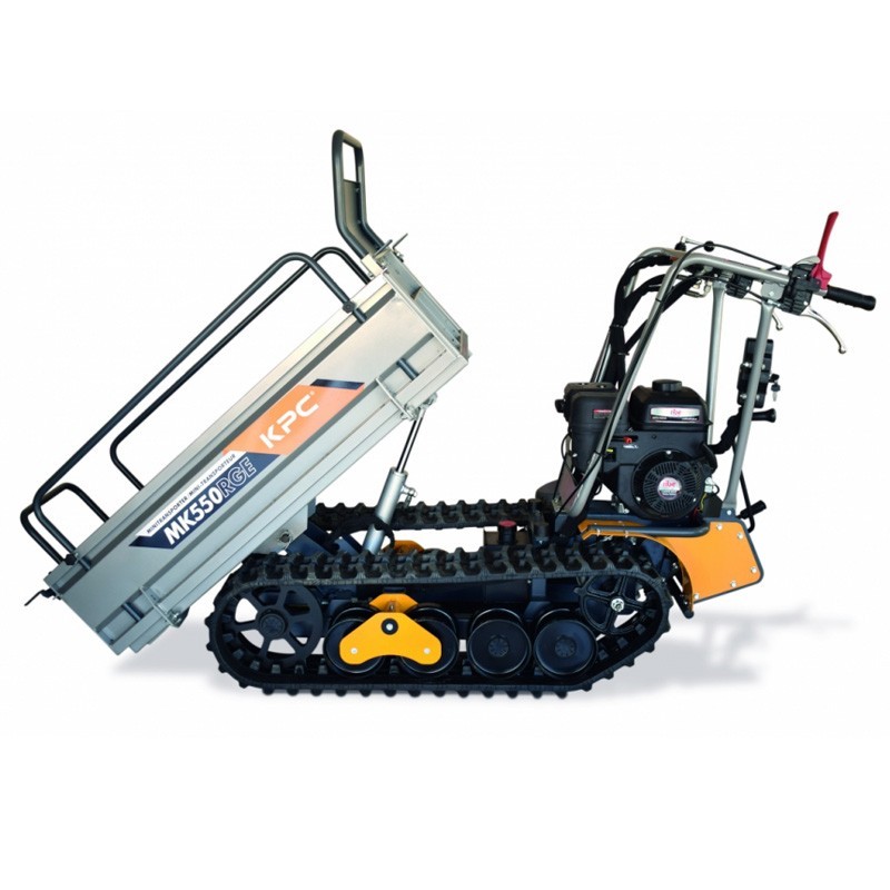 L'MK550 RGE è un modello di gamma professionale, uno dei migliori carrelli elevatori cingoli sul mercato. Ha una capacità di carico massima di 550 kg con un sistema di ribaltamento idraulico per facilitare lo scarico e dispone anche di un sistema di avviamento elettrico.