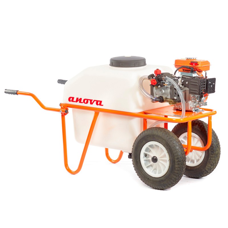 Carriola irroratrice Anova P102 è alimentato da un potente motore a 4 tempi MA81. Questo motore fornisce un cilindrata totale di 79 cc. Questo modello Anova ha anche una pressione totale di 25 bar.