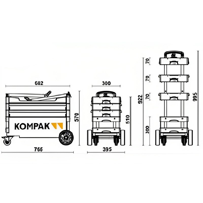 Il carrello portautensili pieghevole Kompak KT01 è una soluzione ingegnosa per i professionisti in movimento. La sua robusta struttura in lamiera garantisce durata e resistenza in ambienti di lavoro difficili.