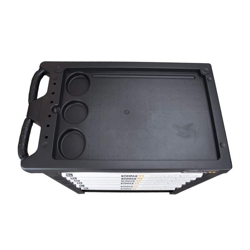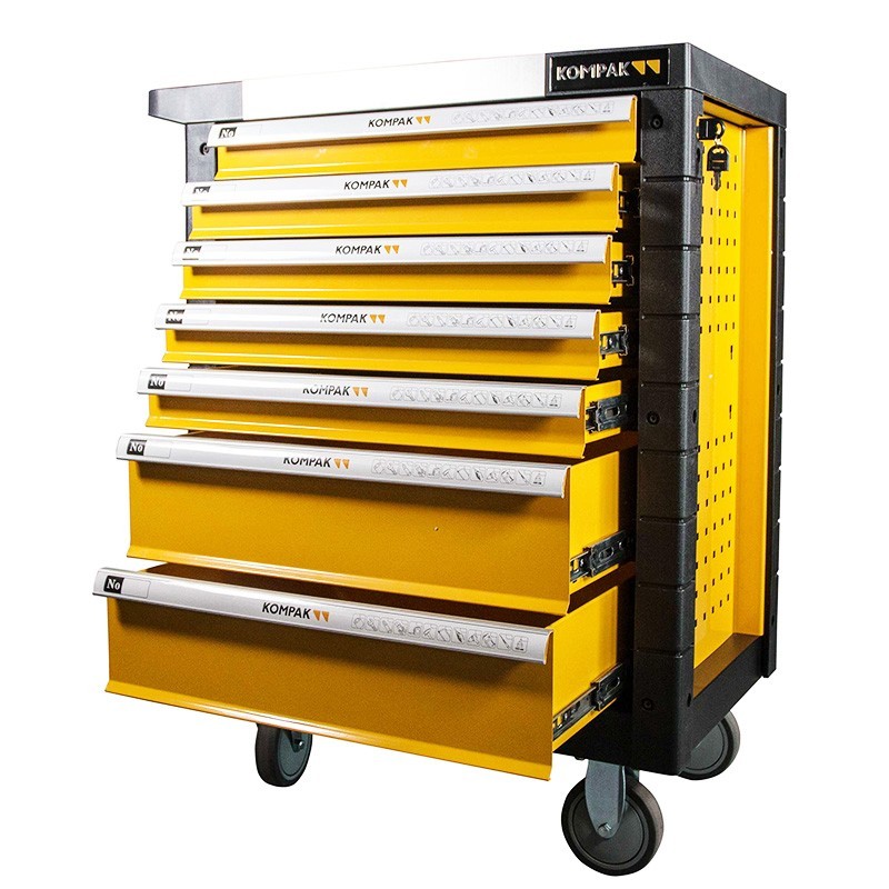 Il Carrello porta attrezzi Kompak LZ02 si distingue per la sua robustezza e versatilità, offrendo una serie di 173 pezzi organizzati in modo efficiente in 7 cassetti e 5 vassoi portautensili.