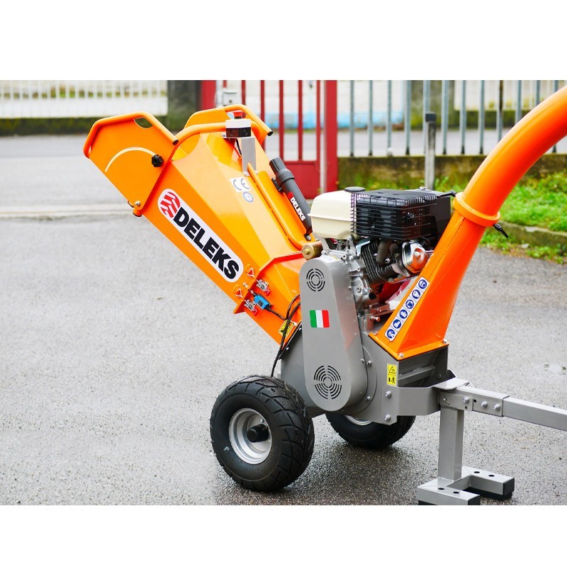Il trituratore modello DK-800 Deleks offre un buon sistema di taglio. Ha un tamburo con due lame e una controlama. Offre anche un'altezza di espulsione di 1600 mm.