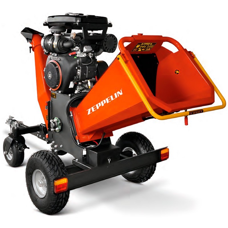Biotrituratore professionale Zeppelin progettato per spostarsi da un'azienda agricola all'altra in totale legalità grazie al suo rimorchio omologato. Il telaio è robusto e stabile e le ruote si piegano e si bloccano per facilitare le manovre in cantiere o in giardino. Il cassone è girevole a 360 gradi per consentirle di posizionare il truciolo dove le serve e lavorare con meno spostamenti.