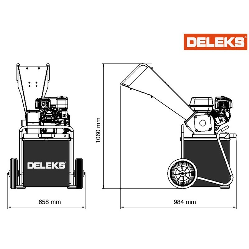 La trinciatrice Deleks DK-300 B&S è uno strumento compatto ed efficiente, progettato per semplificare la manutenzione del giardino e del frutteto. Alimentata da un potente motore a benzina Briggs & Stratton XR950 da 6,5 CV, offre prestazioni affidabili per la triturazione di rami fino a 4 cm di diametro, sia verdi che secchi.