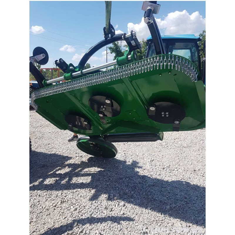 Dispone inoltre di protezione CE per un funzionamento sicuro e di un disco interfilare con pistone a gas per una maggiore versatilità nella decespugliatura. Le catene posteriori aggiungono stabilità e controllo, rendendo questo attrezzo un'opzione robusta e adattabile per la manutenzione del verde.
