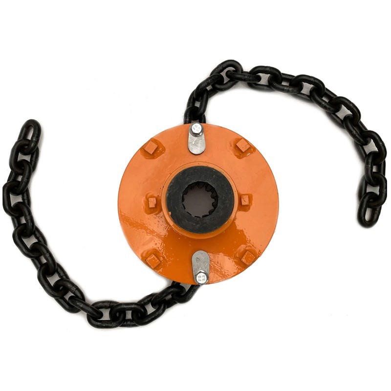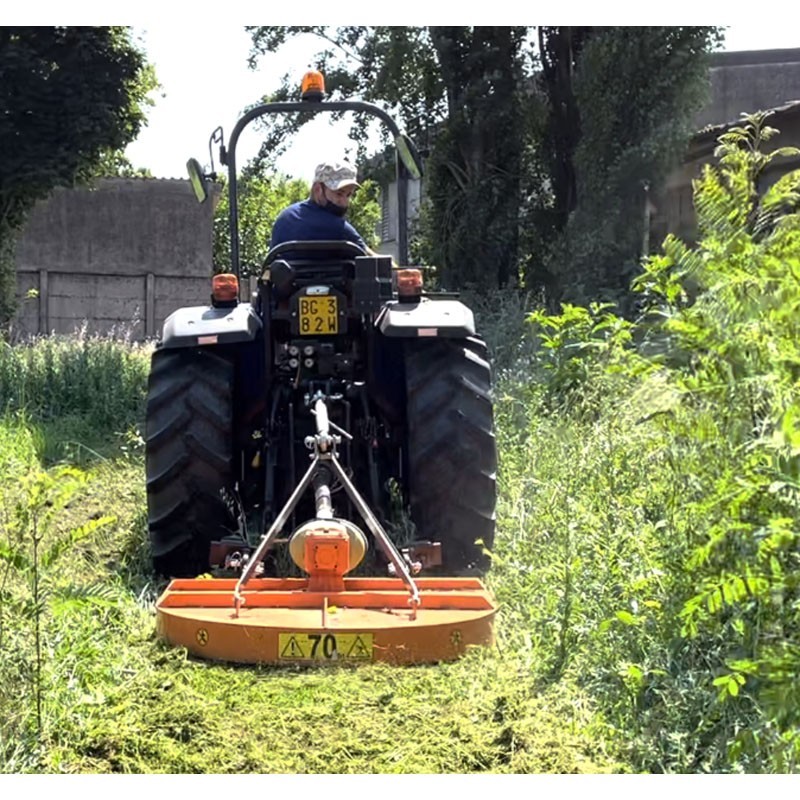Ha 2 catene in acciaio temprato di grado 80 mm. 10 x 30, ha una larghezza minima che consente di tagliare anche vicino ai bordi. Grazie al suo utilizzo reversibile, può essere utilizzata davanti a trattore.
