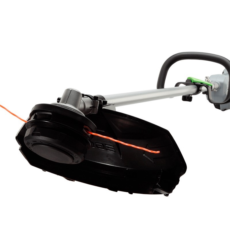 La sua larghezza di taglio di 38 cm assicura un'ampia copertura ad ogni passata, mentre la sua lunghezza di 167 cm offre una portata confortevole per lavorare in aree difficili da raggiungere. Una delle caratteristiche principali di questo decespugliatore è il sistema di ricarica delle corde a cambio rapido da 2,4 mm.